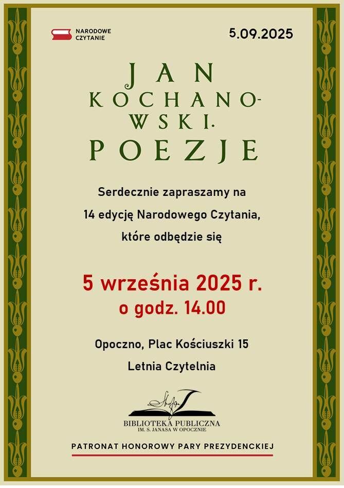 Podczas tegorocznej odsłony akcji zaplanowane jest wspólne czytanie poezji Jana Kochanowskiego.