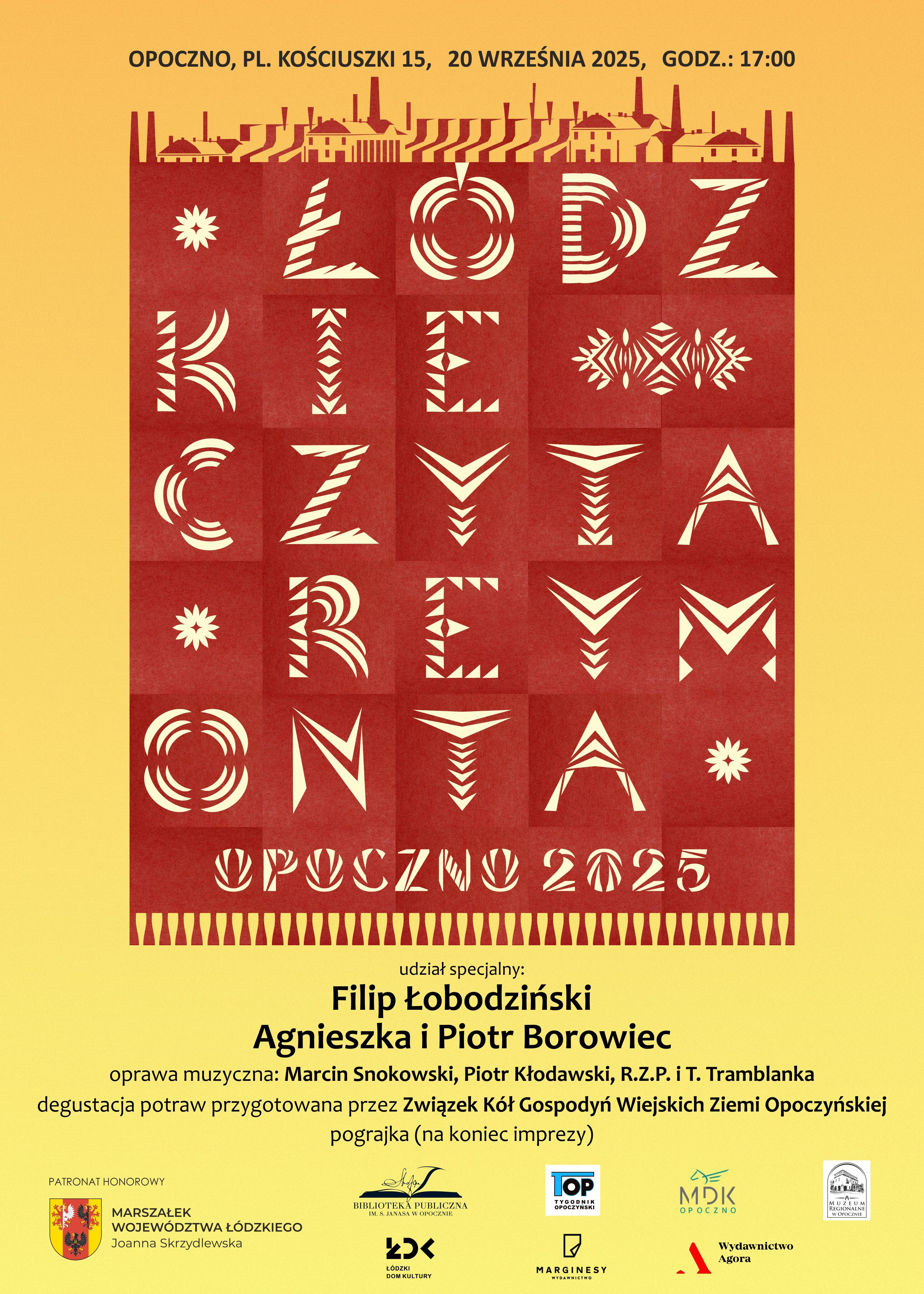 Patronat honorowy nad wydarzeniem objęła Joanna Skrzydlewska Marszałek Województwa Łódzkiego, natomiast organizatorem wydarzenia jest Łódzki Dom Kultury. oraz Biblioteka Publiczna im. Stefana Janasa w Opocznie. Współorganizatorzy: Miejski Dom Kultury w Opocznie, Muzeum Regionalne w Opocznie, Wydawnictwo Marginesy oraz Wydawnictwo Agora.