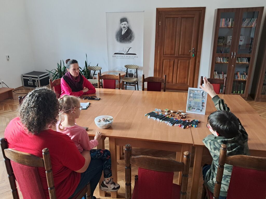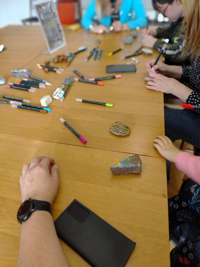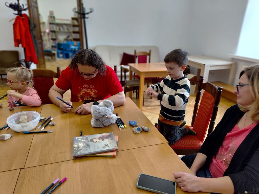 Zajęcia w bibliotece pokazały, że wspólne tworzenie potrafi łączyć pokolenia i inspirować do pozytywnych działań. Powstałe prace ozdobiły biblioteczną wystawkę, a część kamyczków uczestnicy zabrali ze sobą, by rozłożyć je w przestrzeni miasta – przekazując dalej ideę dobra i uśmiechu.