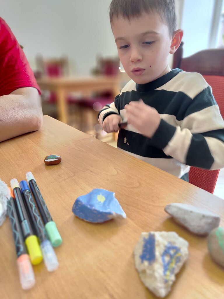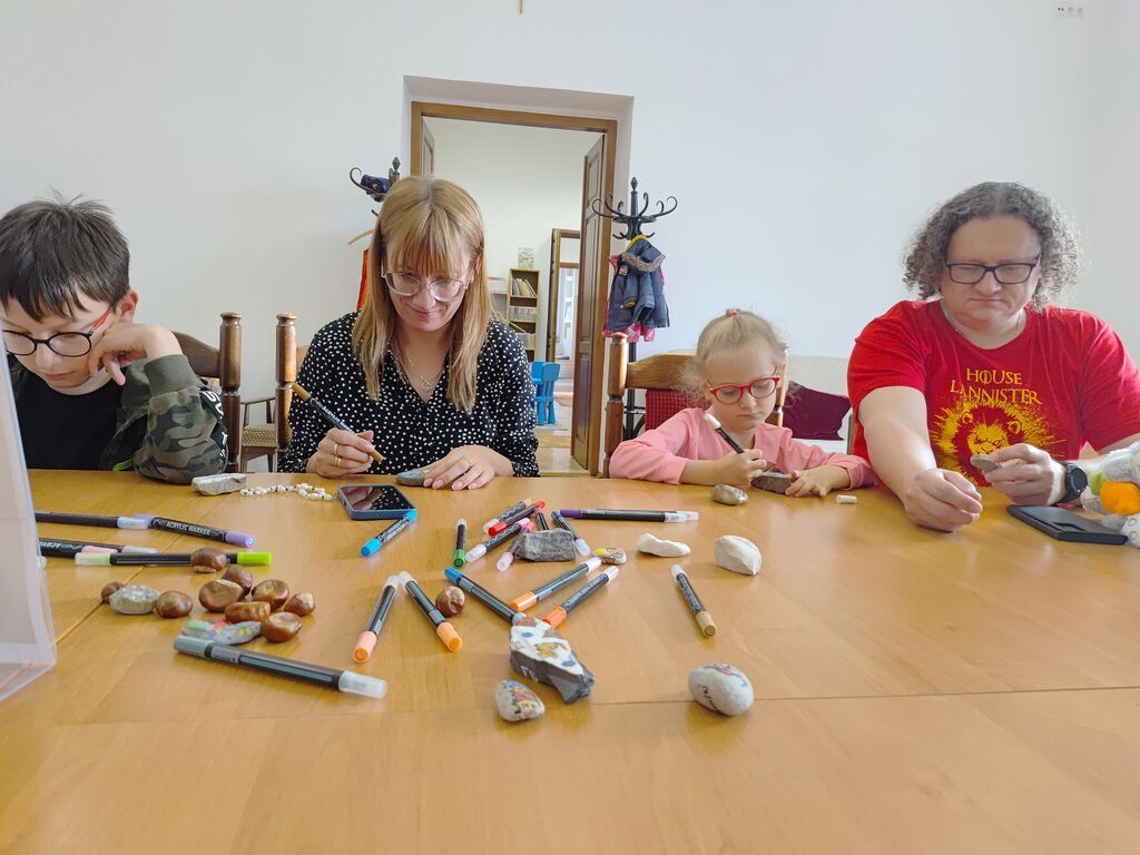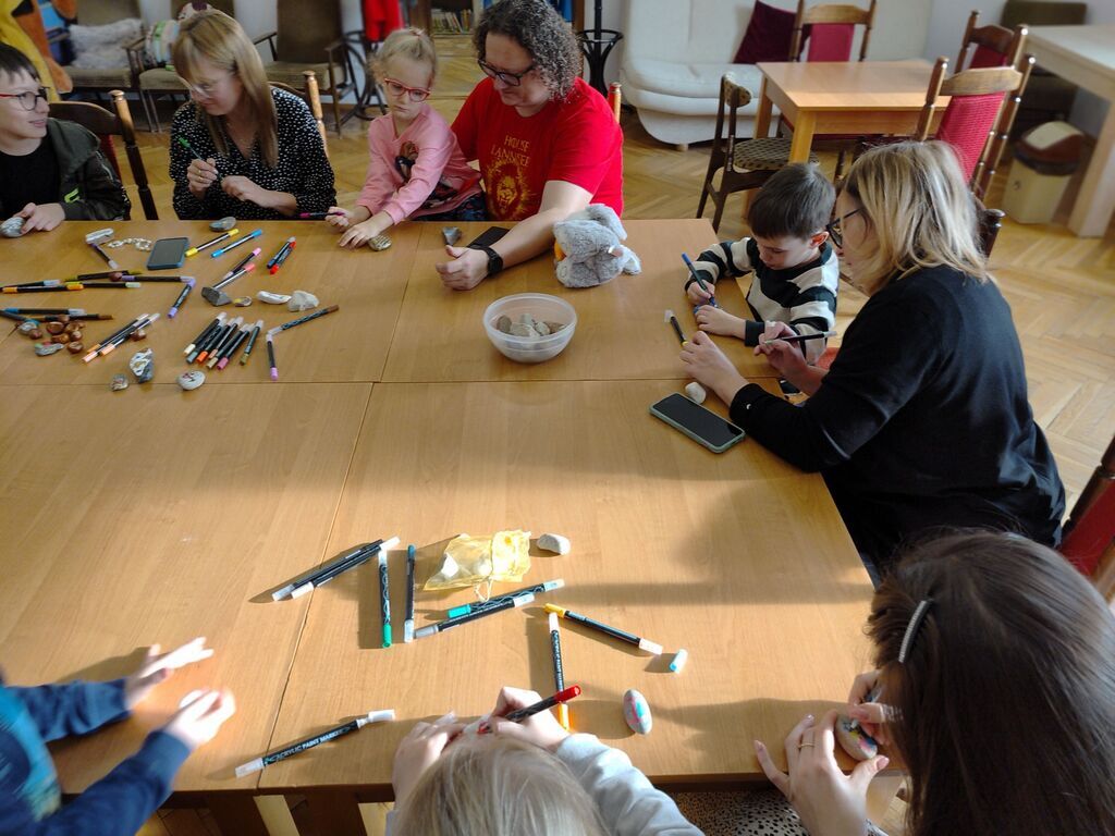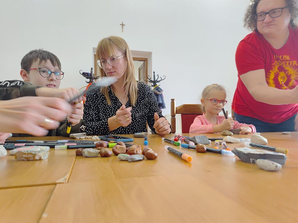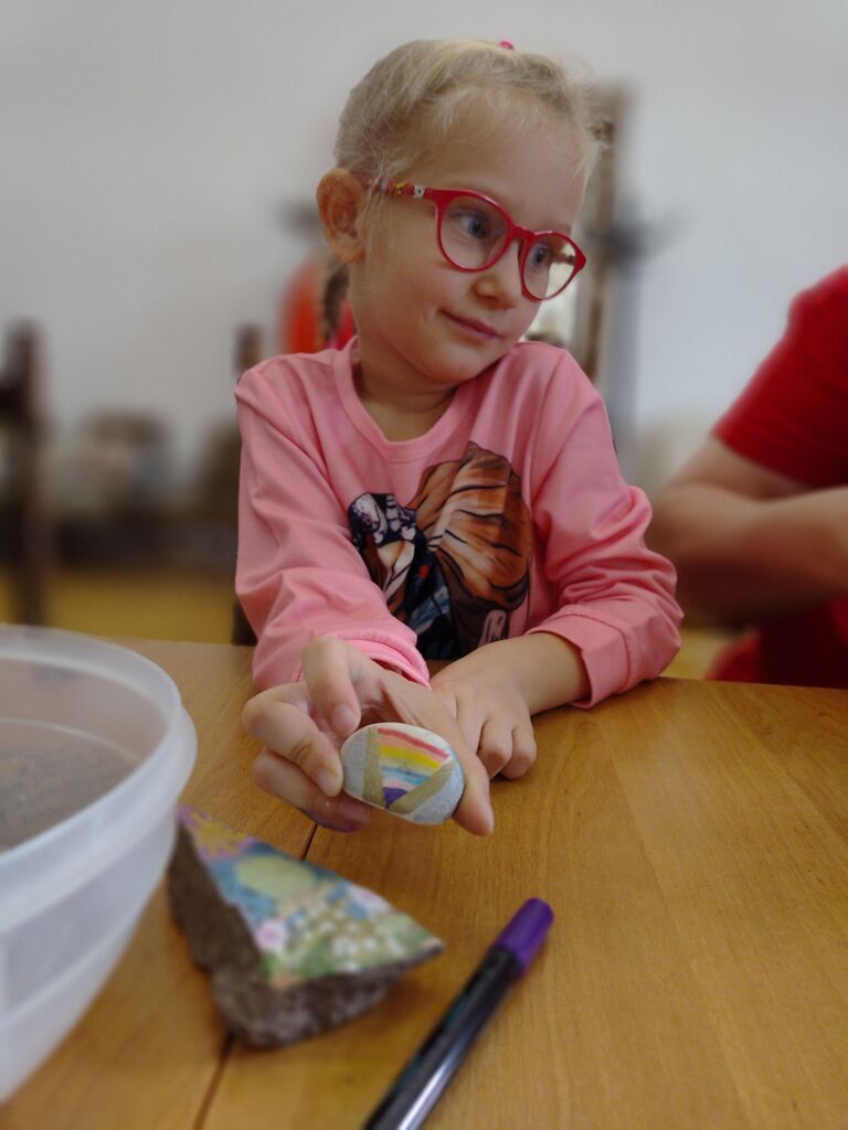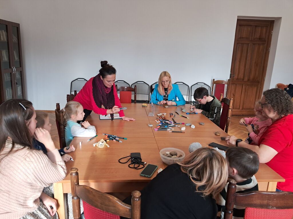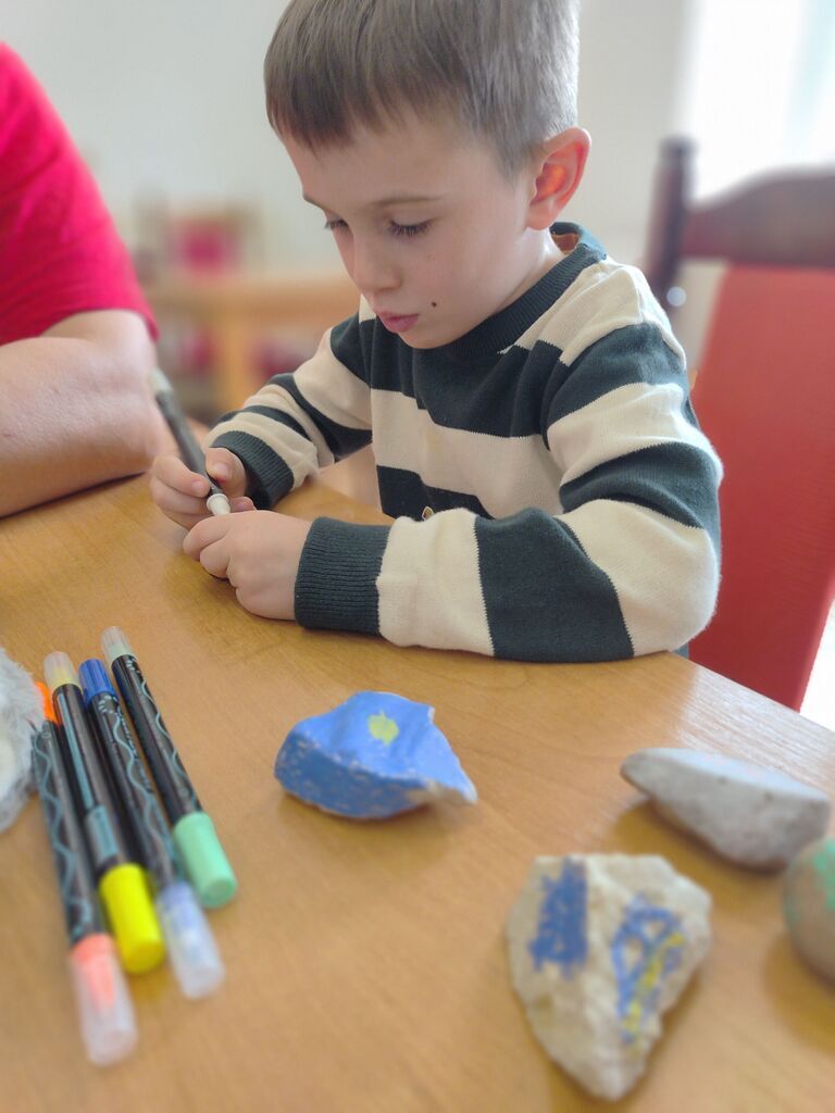 Podczas zajęć zwykłe kamyczki zamieniały się w bajkowe postaci, zwierzątka, rośliny i fantazyjne wzory. Warsztaty stały się nie tylko okazją do rozwijania zdolności plastycznych, ale także do wspólnego, rodzinnego spędzenia czasu w atmosferze radości i twórczej zabawy.