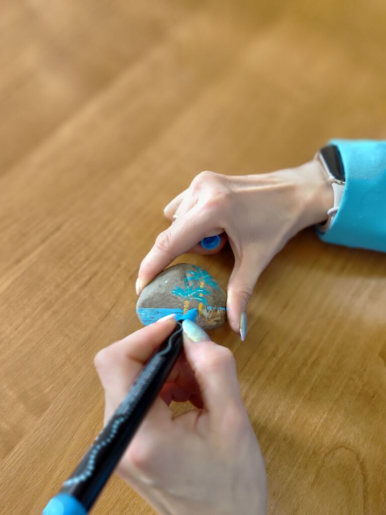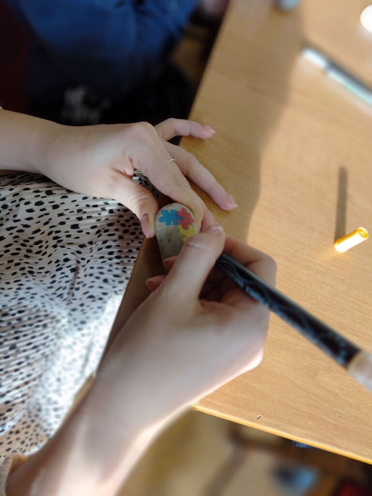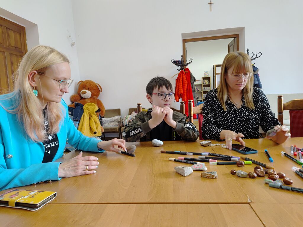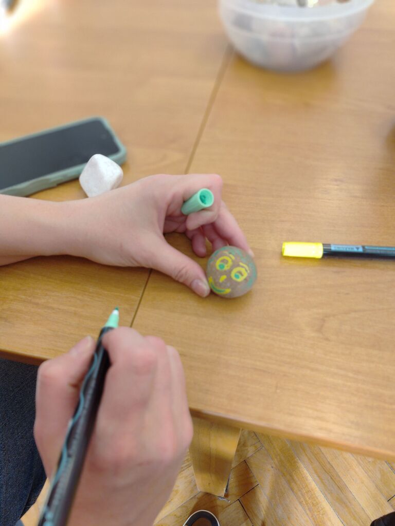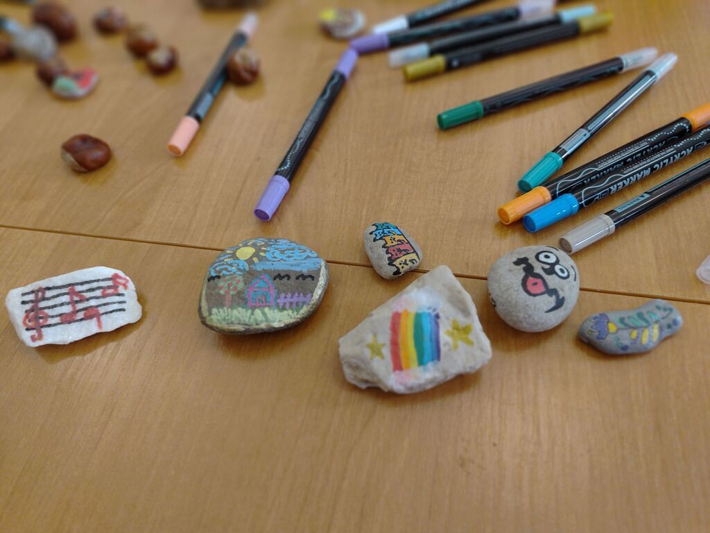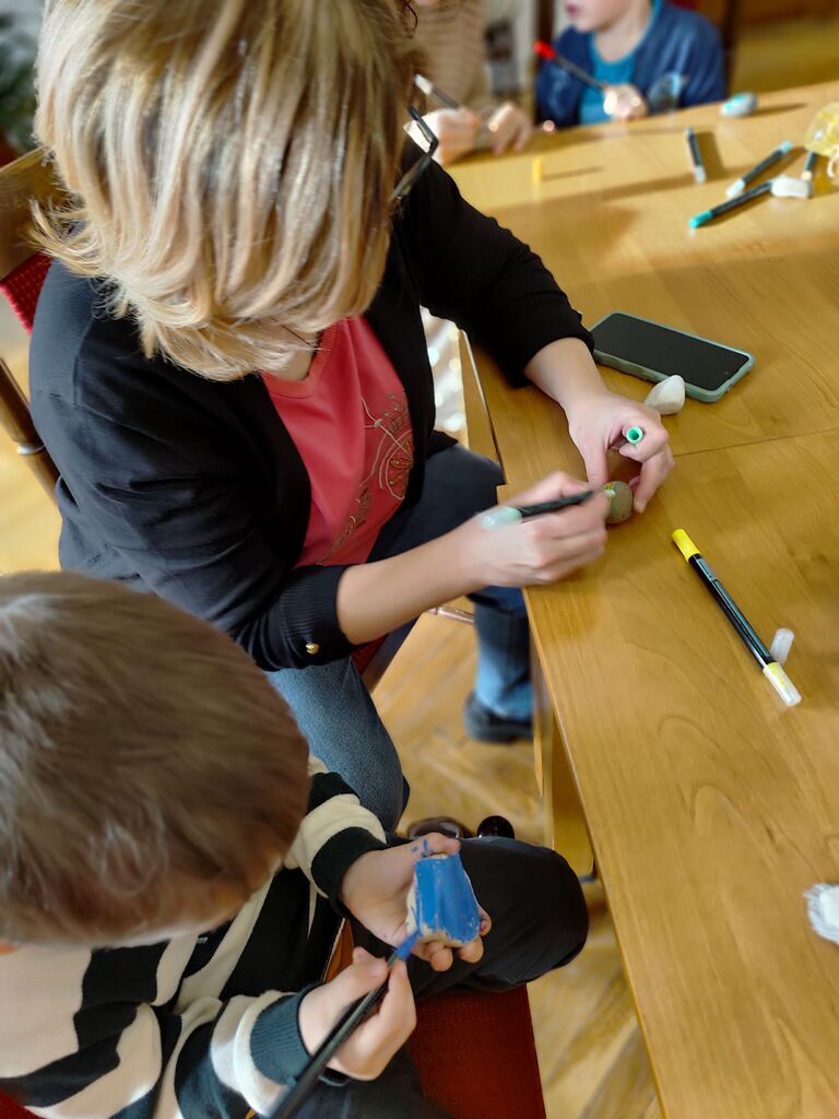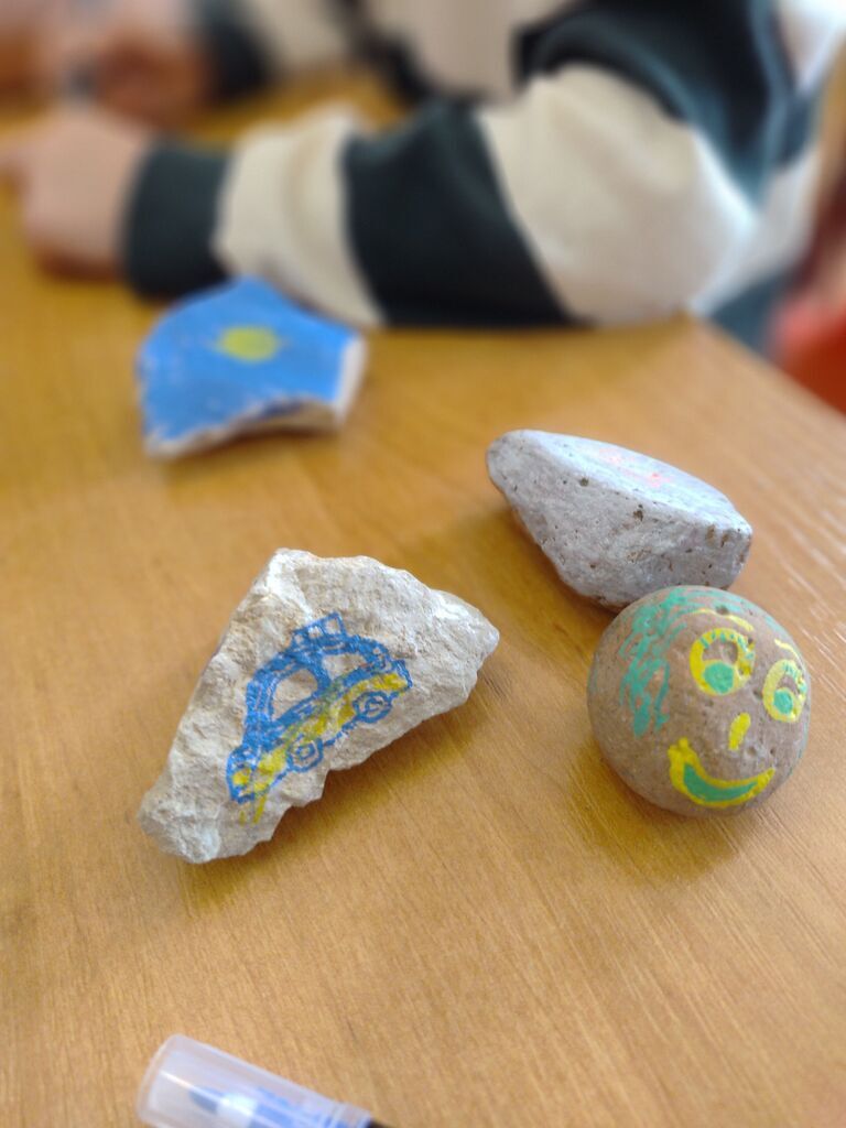 Podczas zajęć zwykłe kamyczki zamieniały się w bajkowe postaci, zwierzątka, rośliny i fantazyjne wzory. Warsztaty stały się nie tylko okazją do rozwijania zdolności plastycznych, ale także do wspólnego, rodzinnego spędzenia czasu w atmosferze radości i twórczej zabawy.