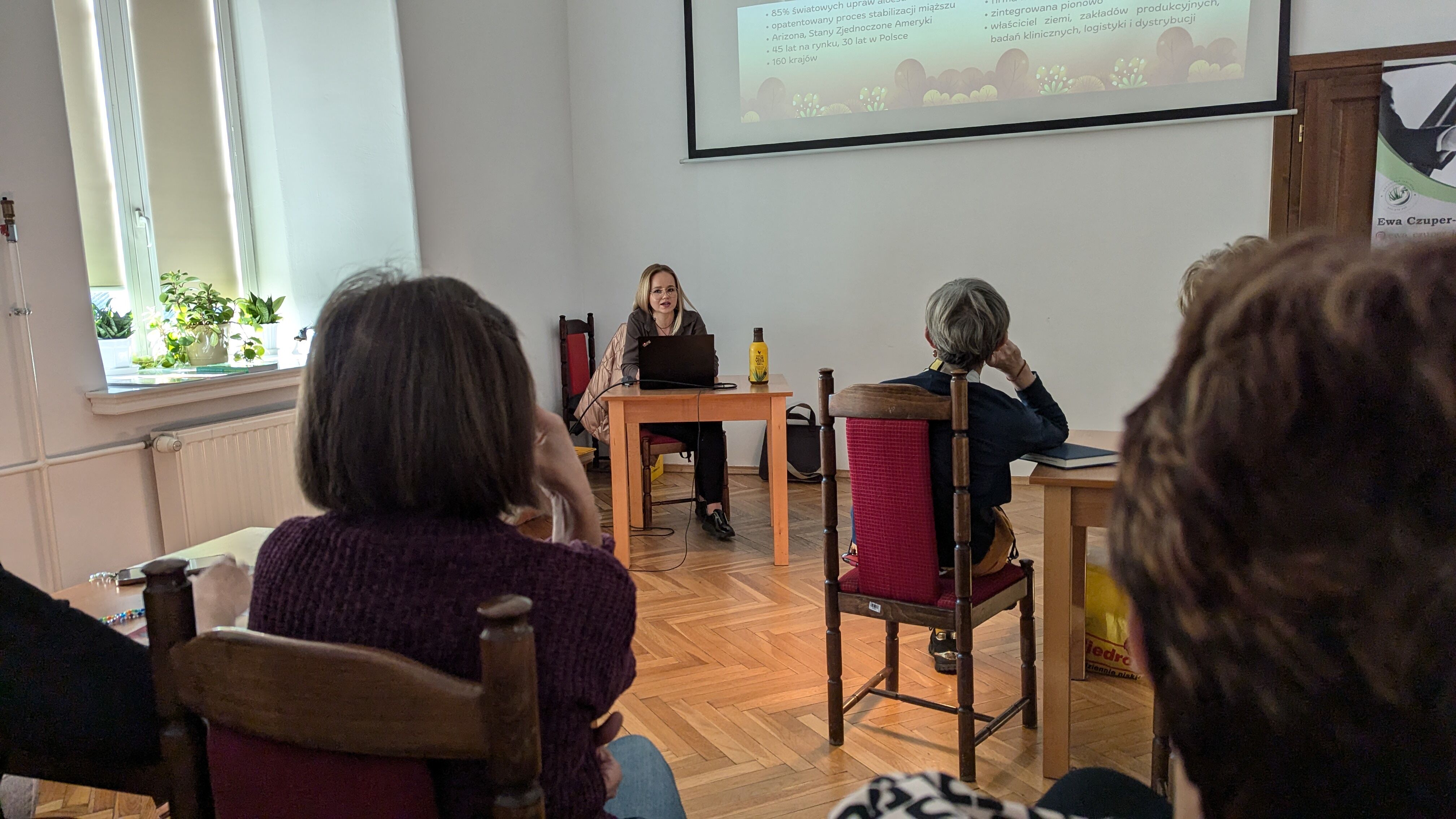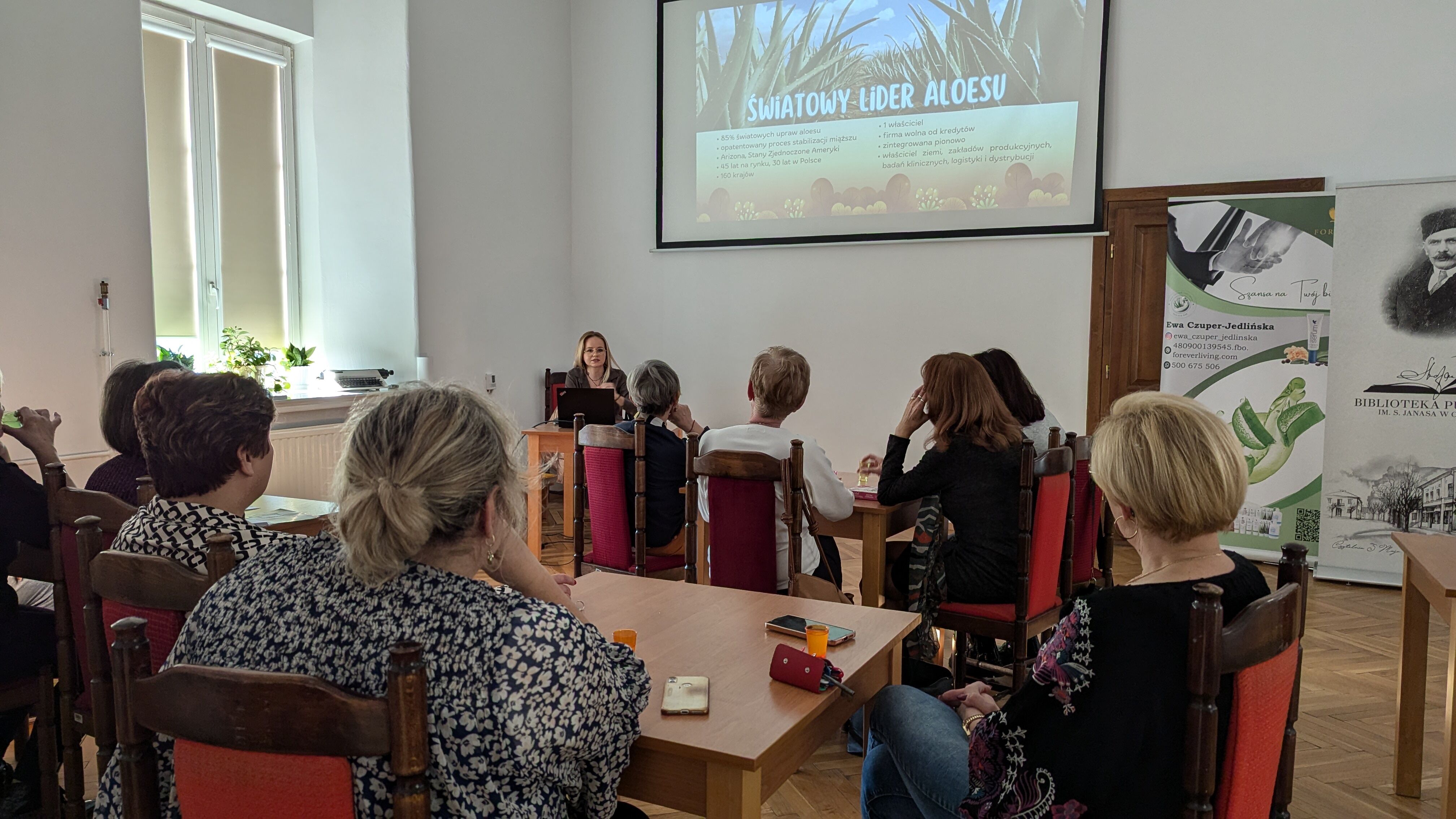 Jesień to pora roku, podczas której organizm wymaga szczególnej uwagi i opieki. Zmienne i niskie temperatury sprawiają, że pojawia się osłabienie oraz spada nasza odporność. Dodatkowo w tym okresie każdy z nas narażony jest na częstszy kontakt z bakteriami i wirusami. Jesień i nadchodząca po niej zima to czas kiedy powoli kończy się dostęp do świeżych warzyw i owoców. A przecież to właśnie one są głównym źródłem witamin chroniących nas przed negatywnym wpływem niekorzystnych warunków pogodowych. Ważnie jest nie tylko co jemy ale jak jemy i ile. Często zapominamy o piciu odpowiedniej ilości wody a w zamian zaśmiecamy nasz układ pokarmowy produktami, które kupujemy bez świadomości co zawierają i jak na nas oddziałują. W związku z tym 6 listopada w naszej bibliotece odbył się wykład oraz prezentacja dotycząca naszego zdrowia. Spotkanie poprowadziła Ewa Czuper-Jedlińska ambasadorka z firmy Forever Living Products, która opowiadała o roli suplementów.